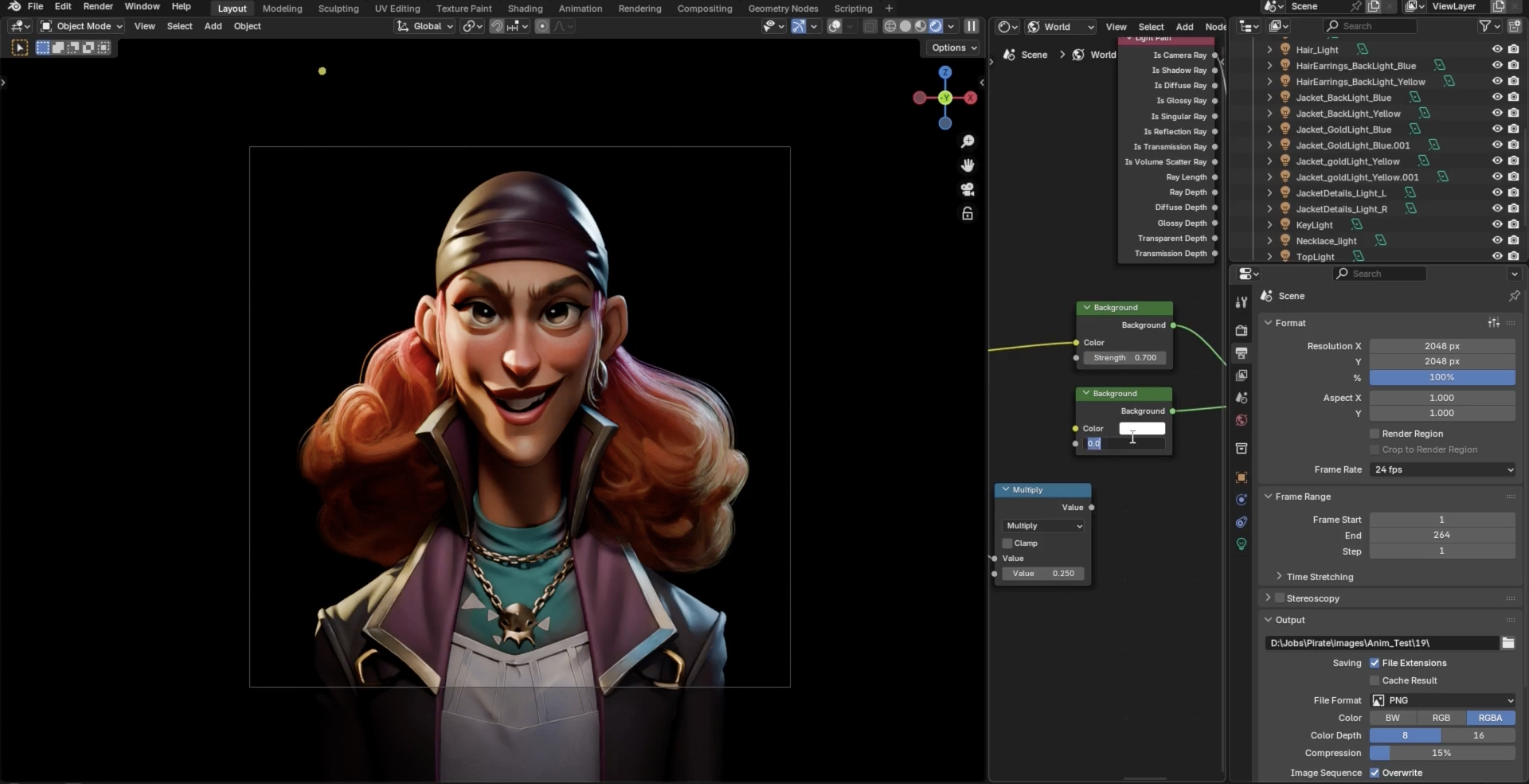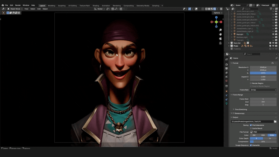 He didn’t rely on a single key light. He began placing multiple lights intentionally to shape specific areas of the character. The face needed different treatment than the bandana. The jacket needed separation from the hair. The necklace needed to catch highlights without blowing out the rest of the scene.